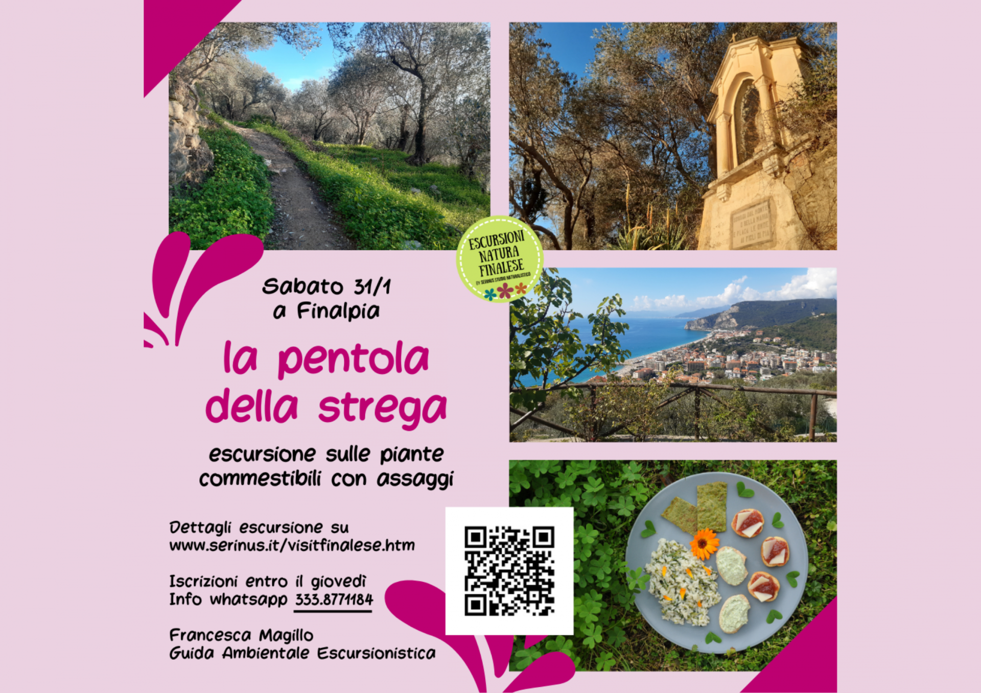 Discover where to find, how to safely identify, harvest, and cook edible wild plants during the winter season. Starting from Finalpia among the olive groves, we will climb Monte di Pia, overlooking the sea towards Finale and Varigotti. After crossing the village, we’ll take the "sea path" and pause at the park of General Caviglia’s mausoleum to enjoy some tastings prepared with the plants we have seen. Then, we’ll return to Pia via small lanes.
