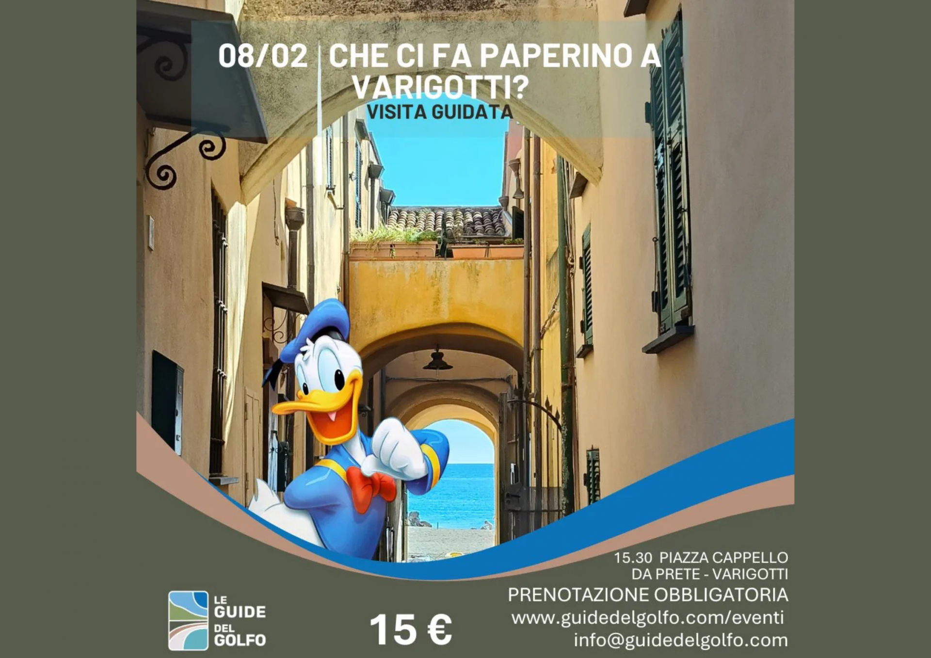 Ma… che ci fa Paperino a Varigotti!? Risalendo tra le “fasce” e la macchia mediterranea, rivivremo “Paperino e la notte del saraceno”, un’incredibile avventura ambientata a Varigotti, nella splendida cornice del promontorio di Punta Crena!!