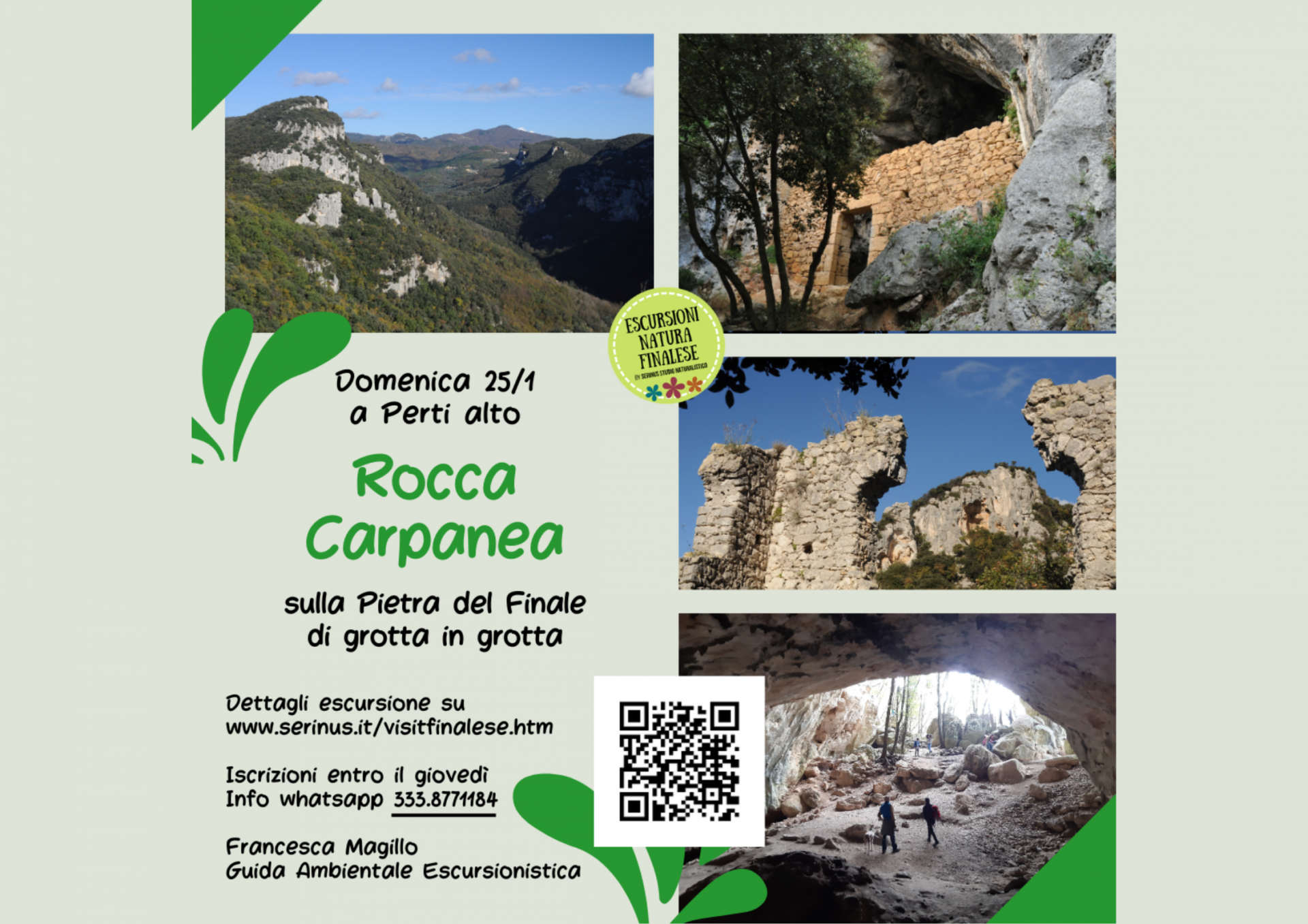 Escursione avventurosa da Perti alto nel tipico paesaggio rupestre della Pietra del Finale, intorno alla Rocca Carpanea. Saliamo al Castrum Perticae per via alternativa e panoramica, quindi proseguiamo nella silenziosa valle Erxea infilandoci in due grotte ad antro poco conosciute. Mangiamo affacciati sopra Pianmarino e per stretto e nascosto sentiero arriviamo alla grotta Pollera. Infine, non ci facciamo sfuggire un altro paio di belle grotte e rientriamo!