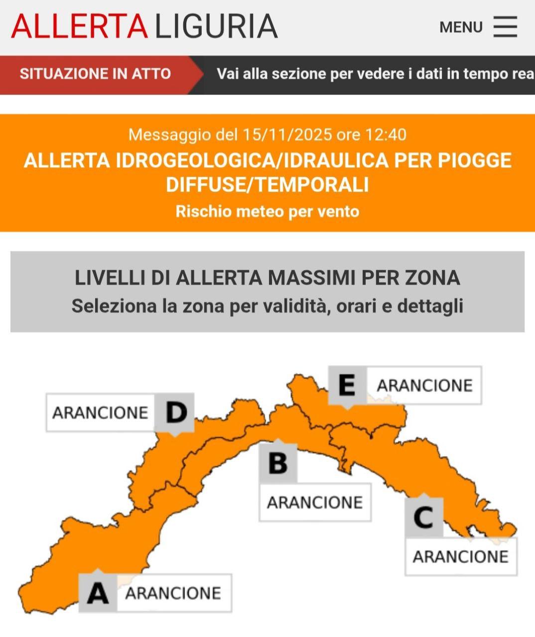 A causa delle intense precipitazioni di oggi e dell’allerta arancione emessa da Arpal, in vigore dalle ore 12, l'INTERA RETE SENTIERISTICA è da ritenersi CHIUSA per tutta la giornata di domani, domenica 16 novembre.